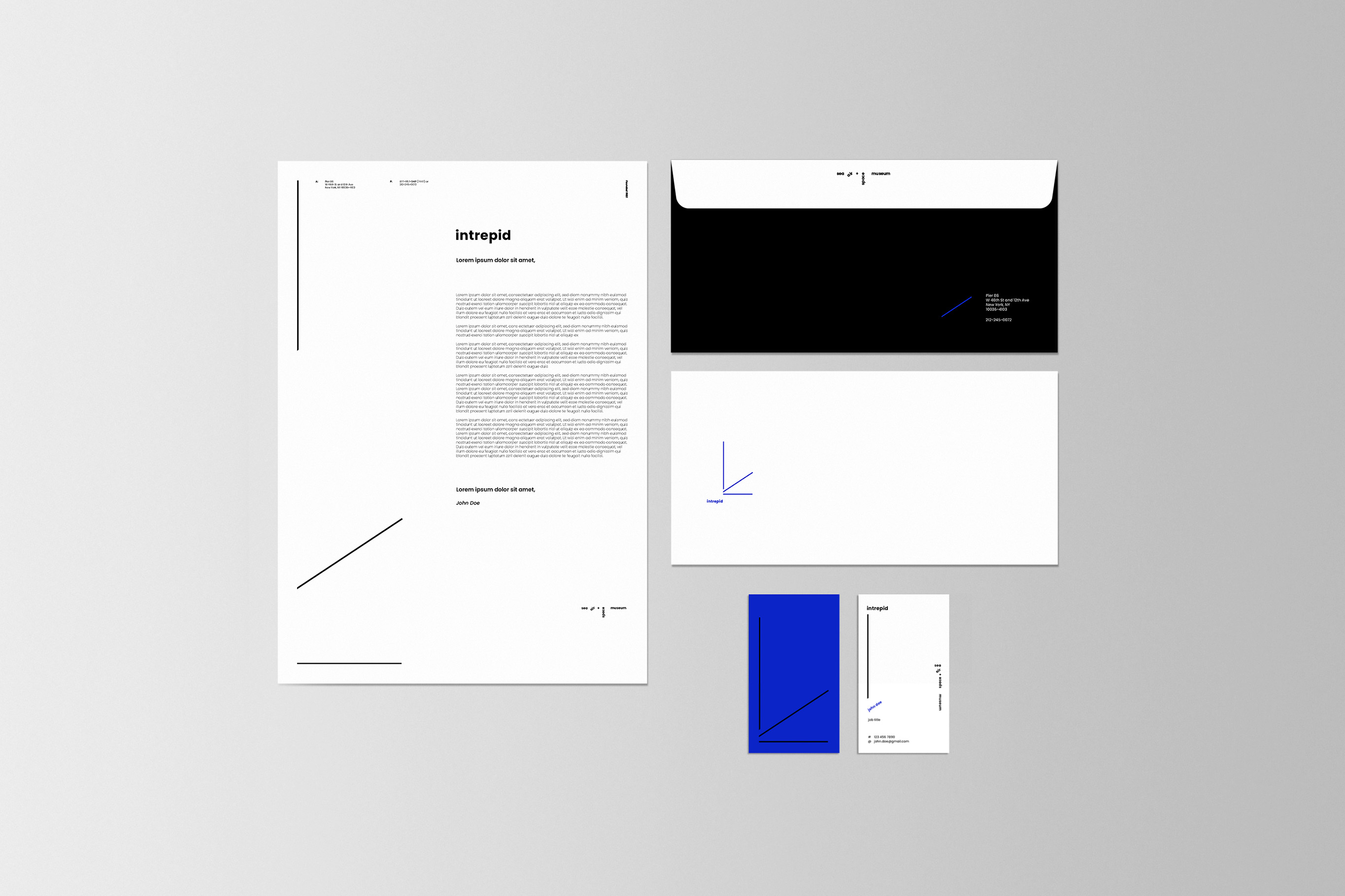 Intrepid is a Sea, Air + Space museum in New York City. This rebrand concept hightlights the trajectory of the three museum categories throught the dynamic mark and imagery system.